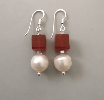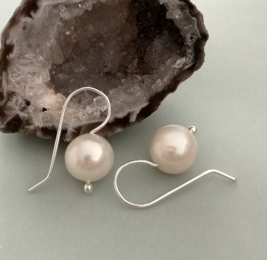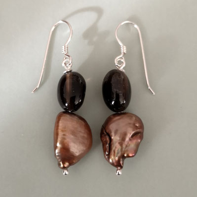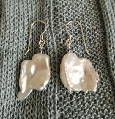 Die barocken Coinperlen - münzförmig - haben einen Durchmesser von ca. 12 mm. Ein einzelner Ohrring wiegt ca. 1,5 Gramm.