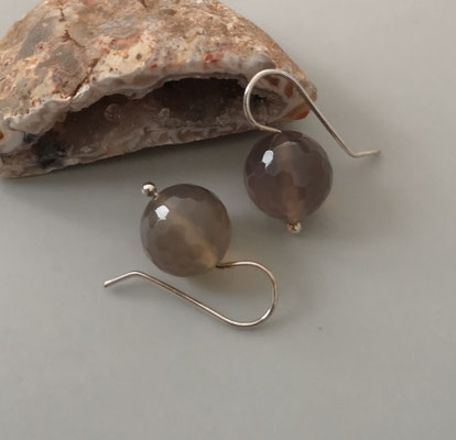 Die barocken Coinperlen - münzförmig - schimmern in einem mittleren Grau. Die Coinperle hat Durchmesser von ca. 14,5 mm. Ein einzelner Ohrring wiegt ca. 2,0 Gramm.