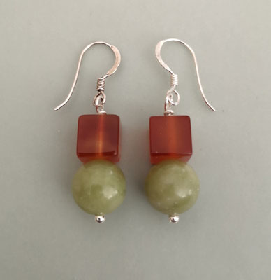 Länge ohne Ohrhaken ca. 27 mm. Ein einzelner Ohrring wiegt ca. 2,4 Gramm. Prasem ist eine Quarzvariante.