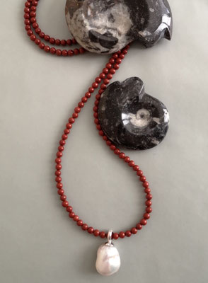 Das Armband aus rotem Jaspis mit einer einzigartigen Barockperle ist ebenfalls ein Unikat. Sie finden es hier.